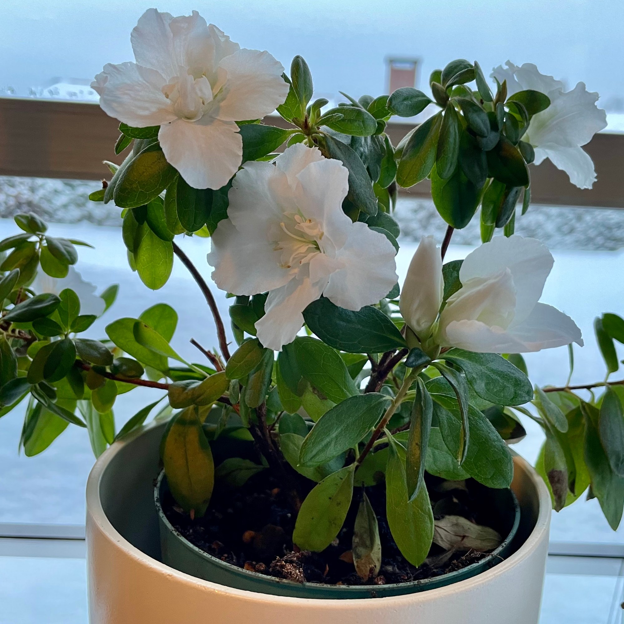 It’s been a very cold winter with more snow than we have seen in years. My indoor plants kept the ‘gardening spirit’ in me going through the winter. It is wonderful to watch an orchid bloom, after almost a year of waiting. The azalea is now over 2 years old. Both plants have the most delicate white blooms. As the days get longer and brighter, I look forward to spring and gardening outdoors.